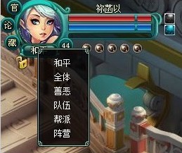 在神魔仙界里,共有六种攻击模式(和平、全体、善恶、队伍、帮派、阵营)如下图: