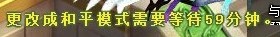 可以看出,除了和平模式,其他的五种模式都可以攻击指定一部分的其他玩家。那么切换到这些模式的时候,想要再切换回和平模式则需要一个小时的时间间隔,而切换到其他攻击模式则无时间**。如图: