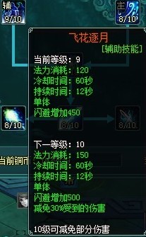 飞花逐月(10级):闪避增加500,减免30%受到的伤害