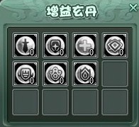 增益玄丹共有七种.分别是:攻击玄丹,30秒内加2000普通攻击;普防玄丹:30秒内加2500点普通防御;护法玄丹:给被保护NPC加4000点血;无敌玄丹:30秒内被保护NPC无敌;斗防魔防远防玄丹:30秒内分别加3000点斗防魔防远防.了解清楚每个丹的功效是非常有必要的,可怜笔者第一次用是以为元敌玄丹是游戏角色无敌30秒,遇到超级BOSS的时候很兴奋的吃了一粒并大叫着小样看哥来虐待你!结果被秒杀.巨汗…
