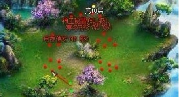 第九层需要注意一下的位置,就是,由于怪物比较分散的,如果只是挂机的话,很容易就会出现走位不一致的情形,分散战力,所以这里最好还是可以手动的控制拉一下,按顺时针或者逆时针的顺序,将所有怪都清了。