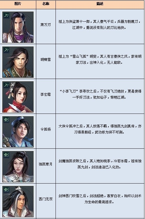 十年一剑传奇家将 十年一剑传奇家将表 游戏中的家将按品质可划分为普通、强力、超级、传奇,其中传奇家将均为江湖名侠之后,天赋异禀,武艺超群。
