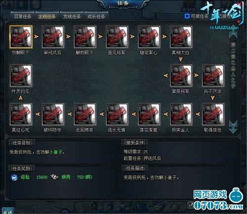 此外《十年一剑》还为你准备了一系列和主线任务相关的支线剧情,玩家在进入不同的地图可以直接触发,玩家可以在可接任务中找到适合你的支线任务直接传送过去,大把经验收获的同时,还能走遍《十年一剑》整个江湖。
