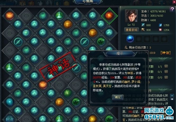 2.获得完美或神话可不是那么容易的,首先七杀阵中等对装备的要求较高,因此玩家在进行前,先评估一下自