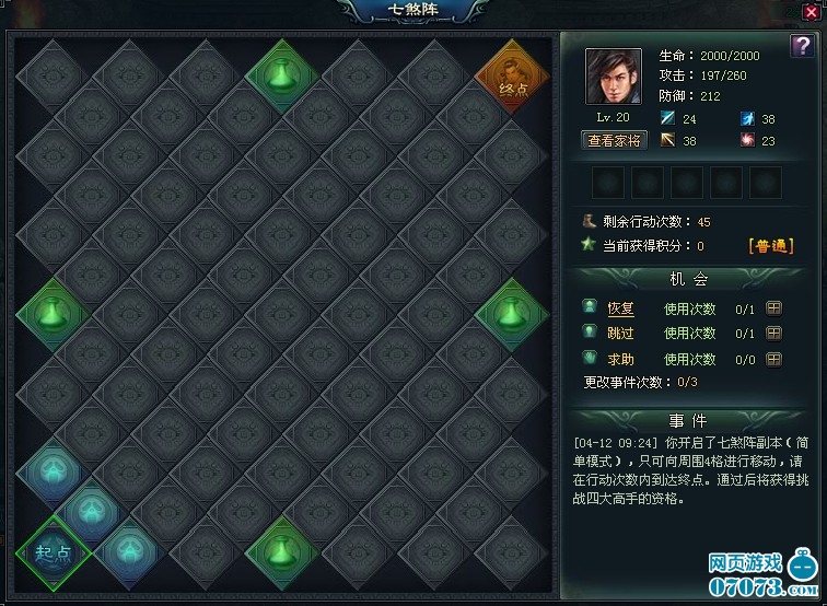 玩七煞阵一定要注意一点:谨慎、谨慎、再谨慎,随时记住你自己的步数,到不了终点,分再高也没用!没有官票和BOSS,七煞阵毫无意义。