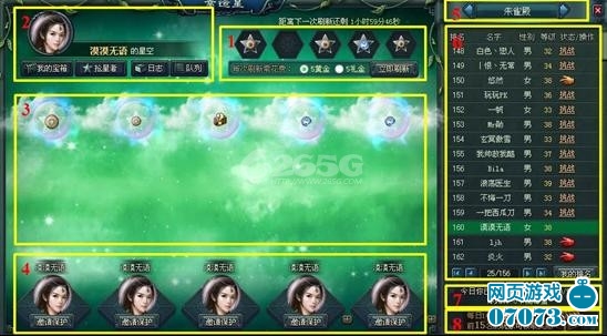 幸运星系统按玩家等级从低到高分为:玄武殿—朱雀殿—白虎殿—苍龙殿—天尊殿—玉皇殿,如果你想要抢别人的星星,千万要看好别人的等级,抢过于厉害的就是单纯的浪费时间,要做到不打没把握的仗,宝剑要么不出鞘,出鞘即见血。同时,再教你一个小窍门——合理使用道具,不用珍惜那一点黄金,黄金是可以通过占星得到的,当你出现大的好星星时,果断使用星台扩充道具,将成倍增加你的收益。