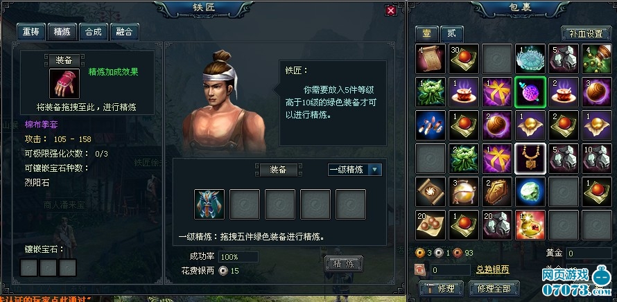 精炼在2在强化+4的基础上才能进行,精炼3在强化+7的基础上行进行
