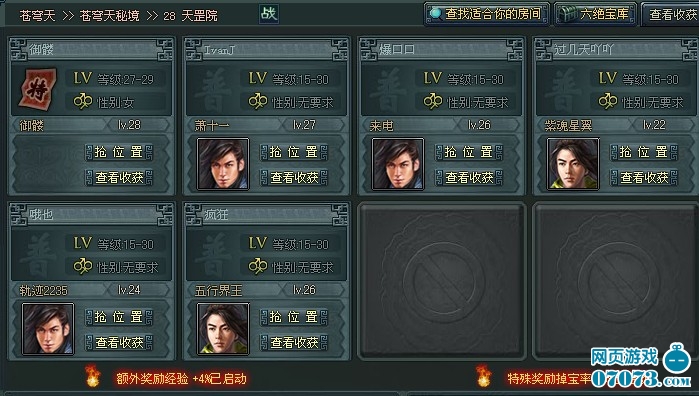 说起来想开额外经验太简单了,自己练一个15~17,17~19,19~21的女号,刷传奇武将的时候肯定有不少废号啊,(男号满地都是,自己就凑过来了),需要的时候上号自己挂着占坑去,上后面点的房间一坐,这至少5%的经验不就到手了吗?有那么费劲吗?而且一个帮派还可以共享这些废号,你大概都不用自己练。