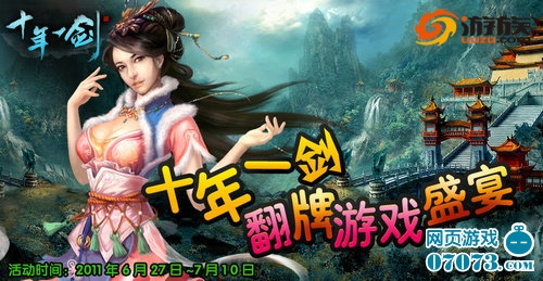 《十年一剑》携手07073联合举行翻牌盛宴,激情六月,大奖好礼等你来拿。从6月27日到7月10日,凡是《十年一剑》的玩家登录07073活动专用页面,轻松翻牌,就有机会获得大礼包以及实物大奖,还等什么,赶快行动吧!