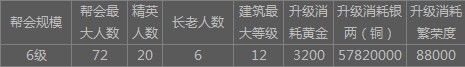 1、 帮会等级提升至6级后,帮会属性将相应提升,具体如下: