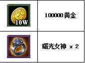 活动期间,只要每天的3场世界BOSS全部被成功推倒(三天共9场),全服20级以上玩家即可在活动结束后领取100000黄金及一对极品紫色戒指——“曙光女神”作为酬谢!