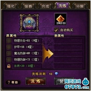 活动期间,通过“铁匠铺”的“洗炼”功能,将任意30级以上紫色装备的5条随机属性全部洗炼为10星,并在论坛活动专用帖(论坛地址)进行回帖提交相应信息的玩家,即可获得活动奖励。