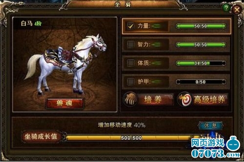 在神曲即将推出的版本中,玩家将拥有众多凶猛拉风的坐骑,它们不止可以提升你的回头率,更可提高角色各项属性,在战斗中发挥一骑当千的作用。玩家等级升至40级时开放坐骑系统,坐骑除了带来拉风的造型,还能大幅提升玩家的移动速度,玩家可以对坐骑进行培养,提升对应的属性经验,还能提坐骑成长值,另外还有神秘的兽魂系统,等着您的体验。
