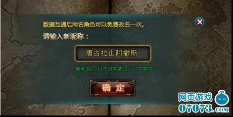 云服务器跨服大战操作后,如果出现角色名重复情况,则在玩家登陆游戏后会弹出修改呢称的对话框,重新输入新的呢称后点击确定按钮即可进入游戏(角色名修改规则同角色新建时的角色名输入规则)。