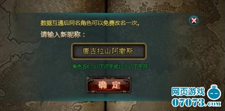 云服务器跨服大战操作后,如果出现角色名重复情况,则在玩家登陆游戏后会弹出修改呢称的对话框,重新输入新的呢称后点击确定按钮即可进入游戏(角色名修改规则同角色新建时的角色名输入规则)。