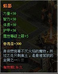 活动内容:魔族在天朝勇士的神威之下,丢盔弃甲,狼狈而逃。帝国元首为表谢意,放出上古魔物“焰影”,让天朝勇士有能者得之!玩家刷新神秘商店就有机会获得。
