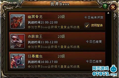更新世界BOSS开放时间: