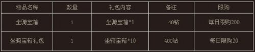 ②坐骑宝箱开出的道具与兑换所得物品均绑定;
