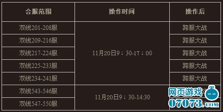 您好!《神曲》自开服以来,凭借出色的品质,独到的玩法受到了广大玩家的热评与追捧。为优化服务器配置,进一步提高服务质量,同时给玩家提供更多交流和互动的机会,我们将在11月20日星期二9:30-17:00对37wan(201-208)、37wan(209-216)、37wan(217-224)、37wan(234-241)、37wan(225-233)区服进行数据合区。在11月20日星期二9:30-14:30对37wan(543-546)、 37wan(547-550)进行数据合区。届时37wan神曲以上区服将会停服进行操作,服务器启动时间将根据实际情况提前或延后,请玩家周知。