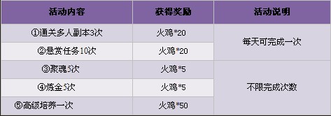 活动时间:2012年11月22日维护后~11月25日23:59:59(每日凌晨5点重置任务)