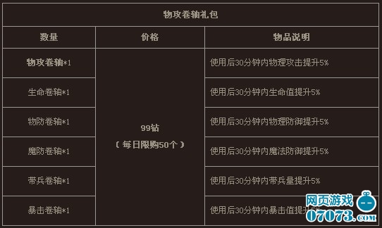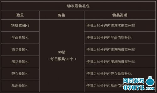 投稿得礼品活动描述:众神之战期间,商城出售超值战力大礼包,卷轴礼包。