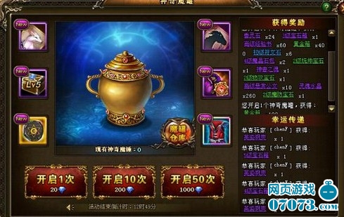 活动描述:活动期间,魔罐神秘降临,各种丰富道具,更有传说中的九尾,5级宝石,高级符文,限量时装等着你~