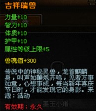 吉祥瑞兽为特殊坐骑,不同坐骑属性可叠加。