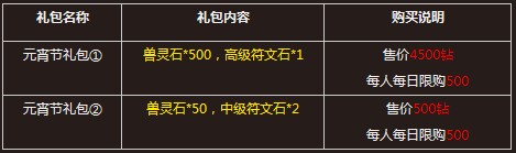 活动内容:元宵佳节,商城特别为曲友们准备了丰富的礼包帮您提高战力。让我们一起嗨起来,高喊:“曲友再也不用为我的战力担心了!