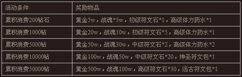 1、玩家累计消费50000钻石,可以在“精彩活动处”领取所有奖励;