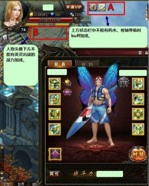 2、战斗力达到要求的玩家,请联系该区游戏专员,并向专员提供有效截图,截图符合要求的玩家可以选择奖励。奖励将会在活动结束后3-5个工作日内发放;(PS:达到条件的玩家,活动期间内,每周四例行维护结束后,统计名单,核实后进行一次奖励发放。)截图示意如下:要求:①如图所示,A区域的状态栏中不能显示药水、卷轴等临时buff加成图标。 ②如图所示,B区域不能显示英灵出战的战力加成。3、所有奖励均为绑定道具;