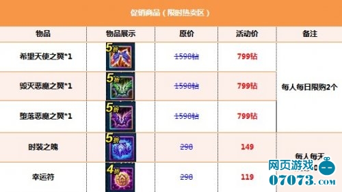 【活动描述】曾经对帅气的稀有翅膀望而却步的你,可曾期盼过有朝一日也能拥有——活动期间内商城翅膀、时装之魄低至5折起!幸运符低至4折,同时符文石大促销进行中。如果再次错过我们精心为您准备的翅膀和符文石礼包,一定会给您留下遗憾哦!快来选购吧!