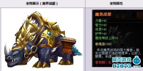 【活动内容】天空之城车水马龙,战斗场内人头攒动,魔界战犀威严助阵,金盔铁甲一展雄风。它愿随君,赤胆忠心,同仇敌忾,威风凛凛,天下谁人不识它与君!活动期间,商城出售超值“魔界战犀”坐骑,快来拥有一只豪杰专属的闪耀坐骑吧,它将踏着星火流云,载着英姿飒爽的你,上战场、下迷宫,破九州,平天下!