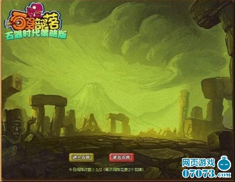 《石器部落》中的巨石阵坐落在满是火山灰的博格达峰大陆。相传在石阵内藏有大量的财宝,每处财宝都有一方守护神魔。凡是等级达到20级的玩家每天均有2次进入其中得机会,若想取得巨石阵中的无尽财宝,就用实力说话吧!