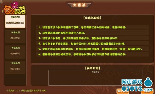 在游戏规则上和大富翁差不多,每天最多挑战2次,由于只能单人挑战,所以推荐等级为20级。对有经验的玩家可以无视推荐等级直接低等级挑战的。