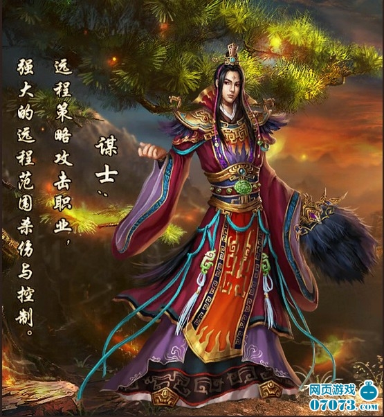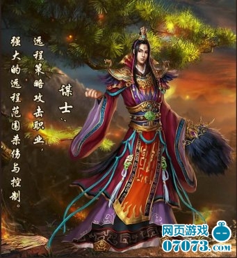 谋士,擅长远距离攻击,以扇作为武器,装备多为布衣、绸缎等轻材质制成。他们虽然看起来文质彬彬,甚至有些弱不禁风,却拥有超高的智商和渊博的知识,那看似优雅的一击却蕴藏着无穷的能量,并能够驾驭自然界的风火雷电协同作战,只要给他们一定的保护,他们会对战斗起到决定性的作用。