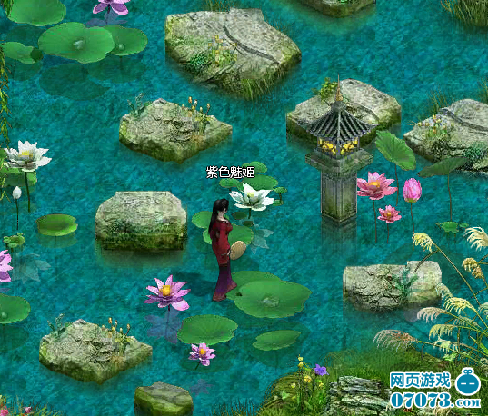 也许玩家是刚经历了一场甚至是几场征战,跟随着游戏的新手指引,正在去下一个地点,一路上,穿过一片荷花盛开的水池,却没有时间停留下来小憩片刻!