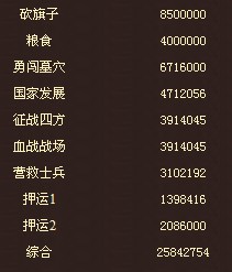 这是任务的经验我们知道弱国有奋发图强大概3100000经验有了数据我们就好算了,首先看下强国,一个旗子就是8500000我们弱国的加成有多少呢5168551这是弱国的经验加成,加上奋发图强跟一个旗子的经验差不多粮食的4百万怎么办。弱国别灰心我们这是没有用任务令来做的,如果我们用任务令后经验加成如下