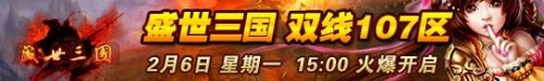 6711《盛世三国》 “双线107区” 将于2月6日15:00荣耀开启!为庆祝这一大作的诞生,官方将举办丰富多彩的活动,诚挚邀请每一位玩家加入到全新版本的6711《盛世三国》盛宴中来!