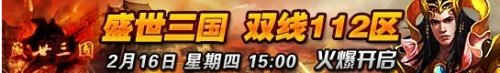 游戏大厅 > 角色扮演 > 盛世三国 > 新闻公告 > 盛世三国“双线112区”2月16日15:00火爆开服