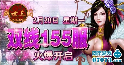 经过一系列的准备,《盛世三国》双线155服将于2月20日14:00震撼开启,与此同时,我们还为各位玩家准备了丰富的活动和好礼,助英雄们驰骋沙场!