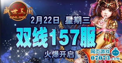 经过一系列的准备,《盛世三国》双线157服将于2月22日14:00震撼开启,与此同时,我们还为各位玩家准备了丰富的活动和好礼,助英雄们驰骋沙场!