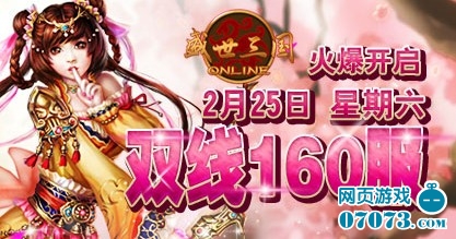 经过一系列的准备,《盛世三国》双线160服将于2月25日14:00震撼开启,与此同时,我们还为各位玩家准备了丰富的活动和好礼,助英雄们驰骋沙场!
