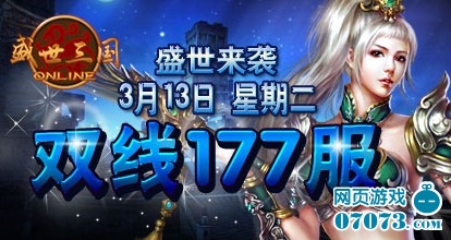 经过一系列的准备,《盛世三国》双线177服将于3月13日14:00震撼开启,与此同时,我们还为各位玩家准备了丰富的活动和好礼,助英雄们驰骋沙场!