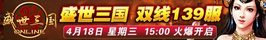6711《盛世三国》“双线139服”将于4月18日15:00荣耀开启!为庆祝这一大作的诞生,官方将举办丰富多彩的活动,诚挚邀请每一位玩家加入到全新版本的6711《盛世三国》盛宴中来!
