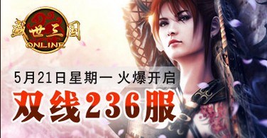 经过一系列的准备,《盛世三国》双线236服将于5月21日15:00震撼开启,与此同时,我们还为各位玩家准备了丰富的活动和好礼,助英雄们驰骋沙场!