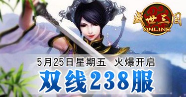 经过一系列的准备,《盛世三国》双线238服将于5月25日15:00震撼开启,与此同时,我们还为各位玩家准备了丰富的活动和好礼,助英雄们驰骋沙场!