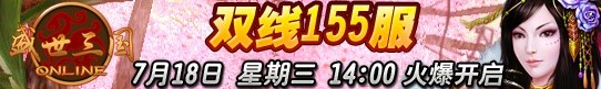 6711《盛世三国》“双线155服”将于7月18日14:00荣耀开启!为庆祝这一大作的诞生,官方将举办丰富多彩的活动,诚挚邀请每一位玩家加入到全新版本的6711《盛世三国》盛宴中来!