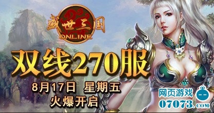 经过一系列的准备,《盛世三国》双线270服将于8月17日15:00震撼开启,与此同时,我们还为各位玩家准备了丰富的活动和好礼,助英雄们驰骋沙场!