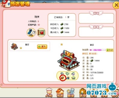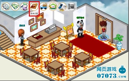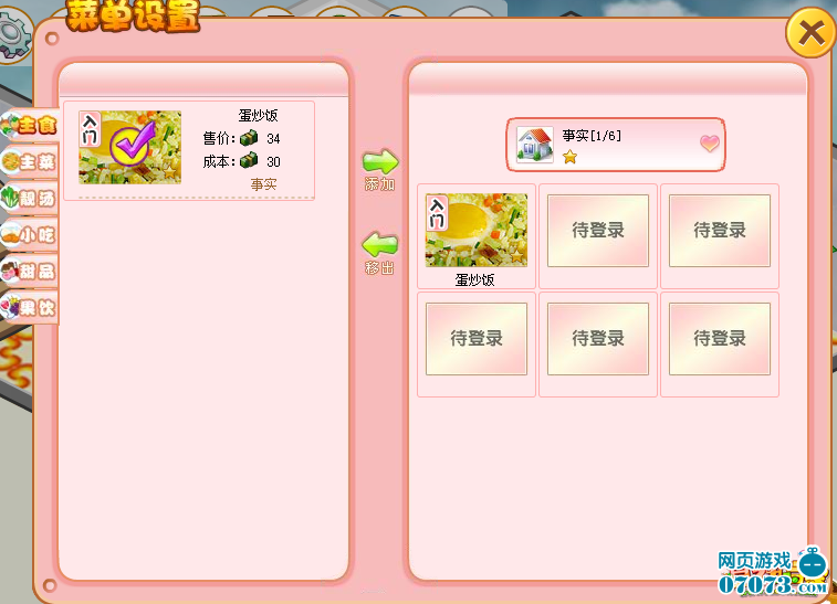 “菜单设置”是饭店中重要功能之一,通过菜单设置可以将学习到的菜肴添加到饭店菜谱中,饭店的菜肴质量和数量会影响饭店的“口味值”及收入。