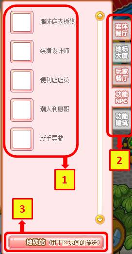 玩家在打开当前地图的时候可见到此列表: 1、 当前地图NPC列表 2、 当前地图搜索列表 |